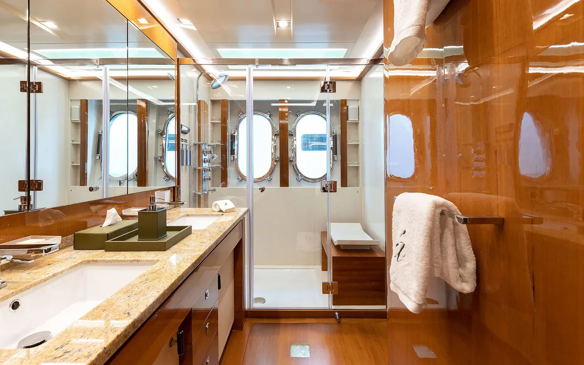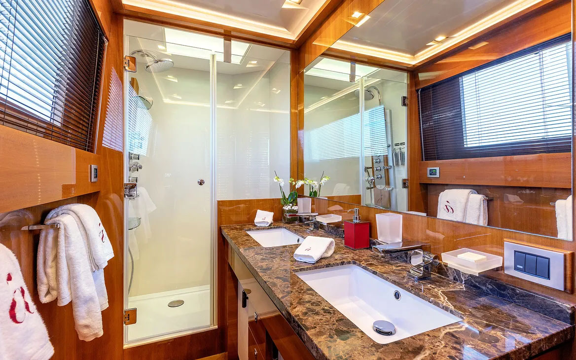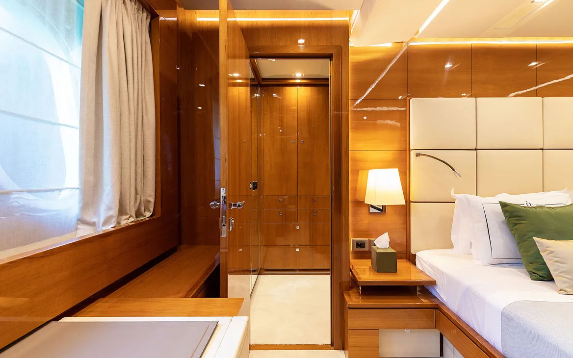This superb yacht accommodates eight guests in four stunning staterooms.